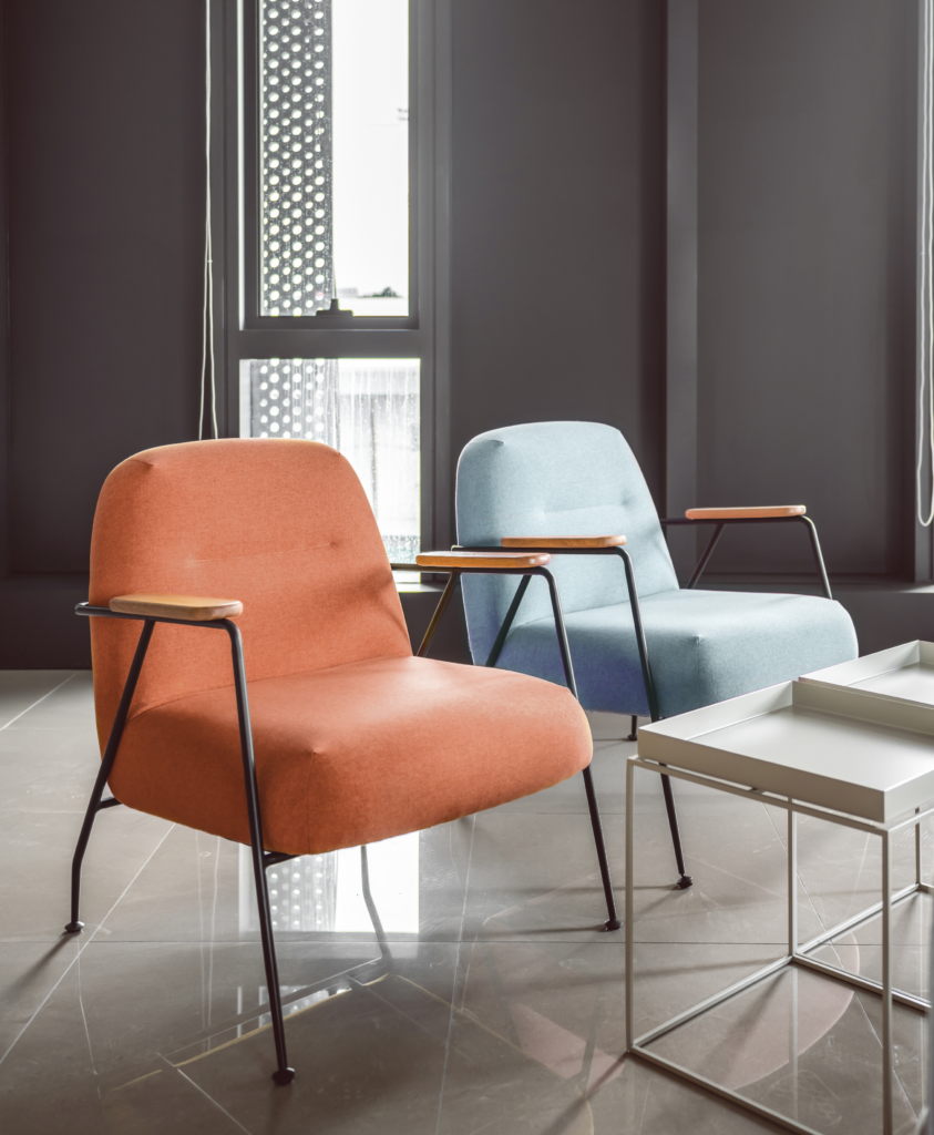 First impressions are everything! So, treat office waiting and reception areas to a sophisticated and slick interior overhaul. Fresh and cool, a two-tone color scheme in Dreaming of the Day and Polished is crisp and clean, especially when accessorized with minimalist furniture and lighting. The palette’s darkest shade, Smokescreen is naturally refined and is enhanced by statement furniture in the palette’s pastel pair.