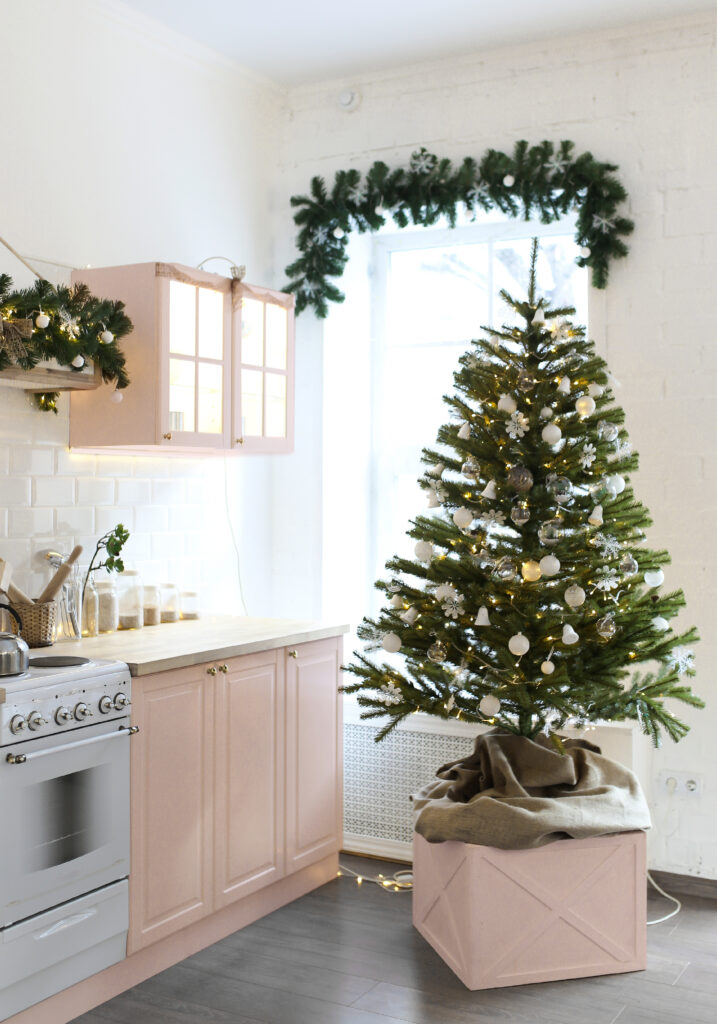 For a rustic and warm style during the festive period, Vintage Gold is an easy all-over neutral for open plan dining and living spaces. To keep with this warm natural scheme, apply mid-tone, Wood Shadow to doors and frames, and add feature walls or fireplaces in soft Feather Stone. Introduce dark natural green, Vegetarian through soft textiles, simple wreathes and of course, the Christmas tree! Warm festive lighting, neutral decorations, wooden logs and wicker baskets all add to this Hygge inspired aesthetic.