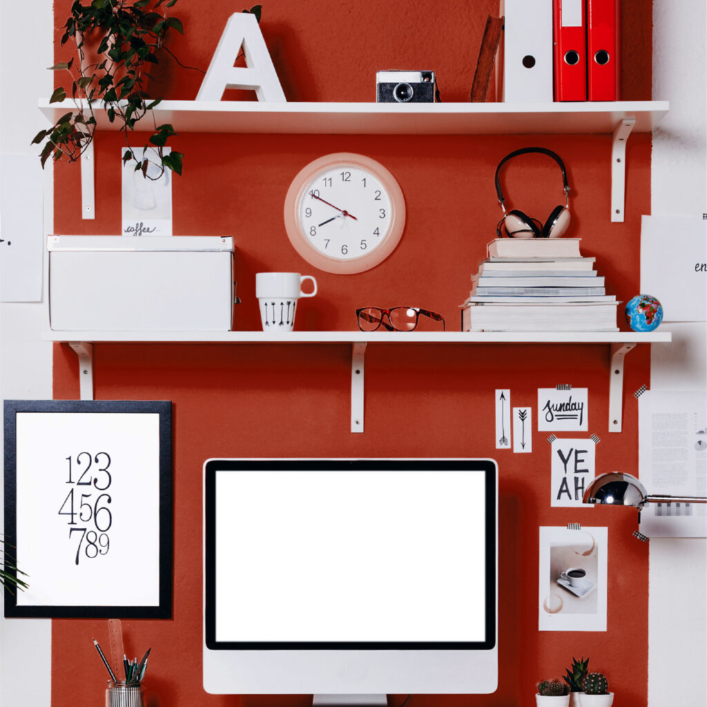 For a more grown up feel, ideal for a study used by the whole family, apply an all-round coating of Beryl Pearl as your base and accent with bold primaries. By painting wooden shelving, wardrobes and cupboard doors you can achieve an energized space with these fun pops of color in Peninsula, Glowing Lantern and Moonrose. One for the whole family to enjoy!