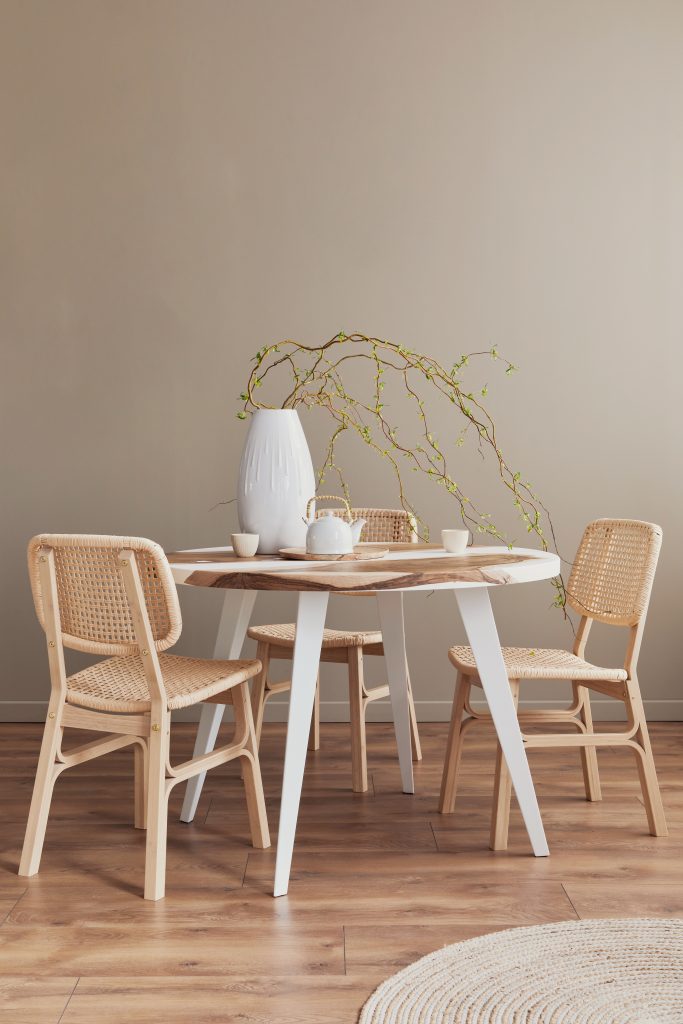 With its gentle warmth, neutral Hidden Cove from the 2021 Color of the Year trend card creates a relaxed mood in dining areas. Dress the space with minimal accessories and furniture in light woods and rattan for an effortless take on timeless Scandinavian style.