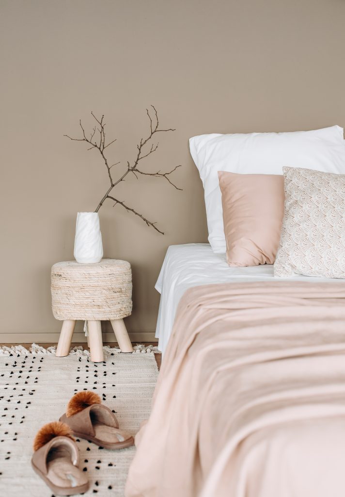 To create an atmosphere of calm and comfort in your bedroom, opt for an allover application in the darkest neutral from this month’s palette. Grounding and cocooning, Coastal Fog is a versatile, shaded neutral that pairs beautifully with organic whites and earthy pink tones. Finish with untreated wooden furniture and breezy textiles in organic materials.