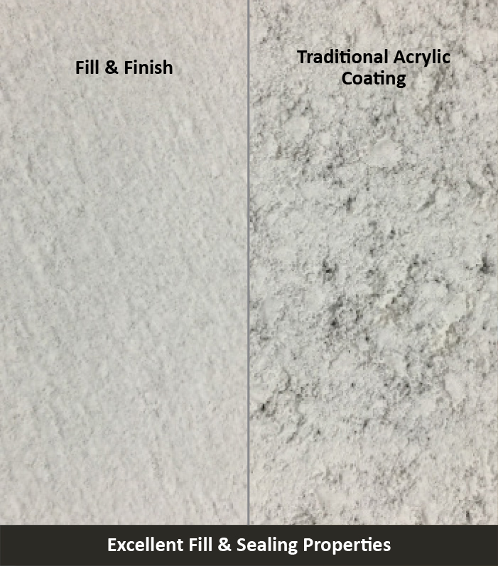 GRIPCRETE FILL & FINISH is designed to provide efficiencies and cost saving measures when coating concrete block, precast, and other masonry surfaces. The single-use, high-building products reduce labor and material costs by filling, sealing, and finishing masonry surfaces in two coats instead of traditional three-coat systems. When applied properly, these products will create a smooth, pinhole-free finish that beautifies and protects masonry surfaces.