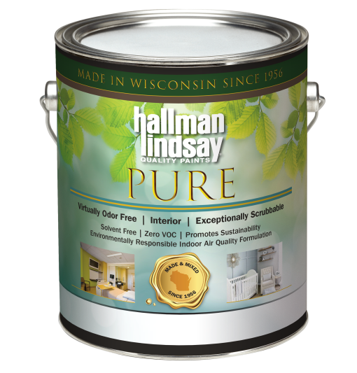 PURE is our most advanced environmentally responsible interior wall paint. Created to address rigorous indoor air quality standards through our virtually odorless, zero VOC, and solvent free formulation. PURE offers supreme burnish & stain resistance and is exceptionally scrubbable for your home or commercial office spaces. Basically, it’s really great paint made & mixed in Wisconsin for You!