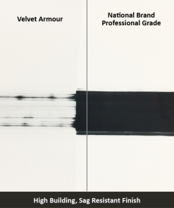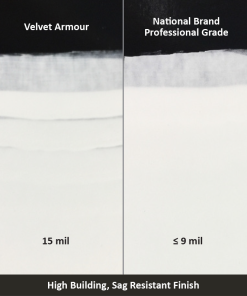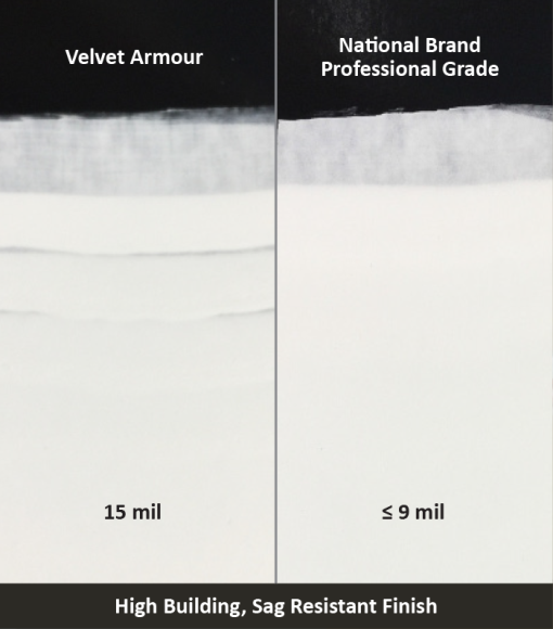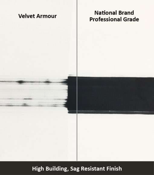 VELVET ARMOR is a unique primer/finish designed to meet the needs for housing and multi-unit construction markets. High build formulation provides exceptional coverage while helping to hide drywall imperfections and repair. The improved angular sheen reduces flashing for easier touch-up in areas with critical lighting allowing for faster job and easier punch-list completion. Unique hybrid technology allows for efficient professional spray application or brush/roll application for easy on-going maintenance after buildings turn over for occupancy.